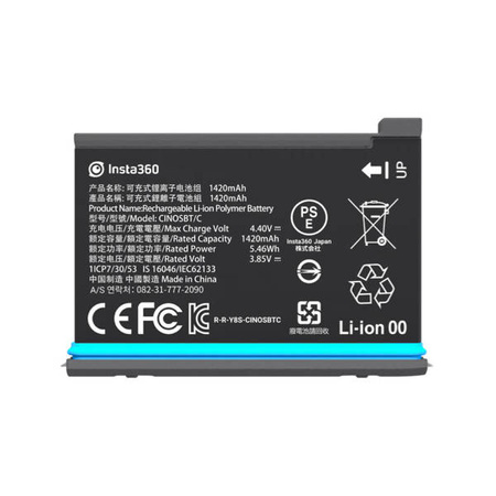 The battery dedicated to Insta360 ONE X2 cameras is additional energy for your camera. The battery is equipped with high-quality cells with a total capacity of 1630 mAh. A fully charged battery will provide approximately 80 minutes of recording (5.7K / 30fps). To maintain the longest possible cell life, the manufacturer recommends charging the battery in the camera or in a dedicated charger.