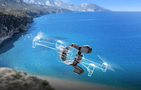 The lenses are precisely positioned, making the drone completely invisible in the resulting footage.