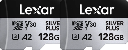Lexar microSDXC Professional SILVER Plus R205/W150 128GB - Zestaw | dwie karty MicroSD