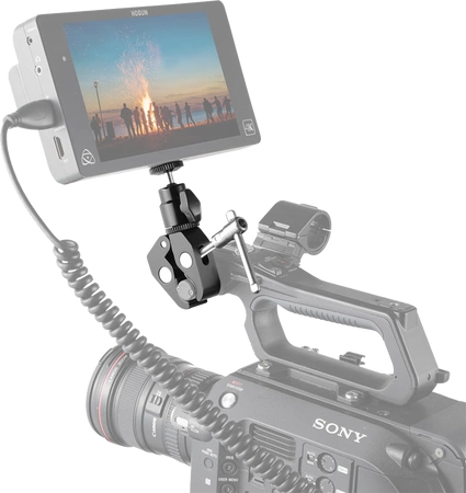 SmallRig Super Clamp Mount (model 1124) został wykonany z lekkiego, a zarazem wytrzymałego stopu aluminium. Umożliwia pewny montaż na wielu powierzchniach i obiektach – od rur o średnicy 15–40 mm, przez haki, półki, szkło, aż po inne uchwyty. Wyposażono go w głowicę kulową z gwintem 1/4"-20, co pozwala na szybkie i wygodne przymocowanie oraz regulację położenia monitorów, lamp czy innych akcesoriów.