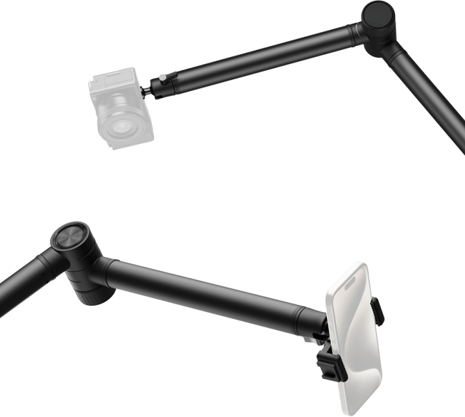 3-sekcyjne ramię wysięgnika zostało połączone z hydraulicznymi przegubami tłumiącymi, umożliwiając zawieszenie w dowolnym punkcie. Rozwiązanie to zapewnia bezpieczeństwo sprzętu poprzez zapobieganie nagłemu poluzowaniu, a jednocześnie pozwala na precyzyjną regulację kątów fotografowania.