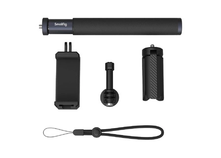 SmallRig Selfie Stick for Action Cameras 4192 zawiera selfie stick, zacisk do smartfona, uchwyt do kamery sportowej, statyw i pasek na nadgarstek. Wykonany ze stopu aluminium lotniczego dla zwiększenia wytrzymałości i trwałości, ten element ma sześciokątne wysuwane sekcje, dzięki czemu kamera sportowa, wysoce ustabilizowana, nie obraca się.