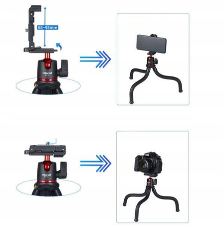 Statyw elastyczny ULANZI to produkt pozwalający na ustawienie / zamocowanie aparatu, kamery, telefonu lub gimbala niemal na każdej powierzchni.
